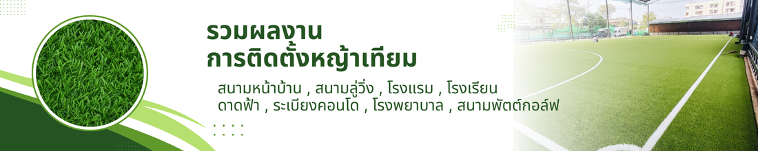 สถานที่ :คุณนุ้ย หมู่บ้าน รัตนาวดี รีเจ้นท์ บางแค พื้นผิวเดิม :พื้นหินคลุกมีหญ้าปกคลุมบางส่วน ใช้หญ้า 2 รุ่น 1. รุ่นหญ้า : UR-4S ทรงCshape /หญ้าแลนด์สเคป เส้นหญ้าสูง :4cm. สีเขียวมีรากน้ำตาลแซม 2. รุ่นหญ้า : 14-020 /หญ้าสำหรับพัตต์กอล์ฟ